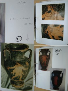 However, the same red-figure attic vase appears also in three images from the G. Becchina archive (image below), which was not mentioned by Royal Athena Galleries. A handwritten note by G. Becchina himself testifies that he had knowledge of the amphora’s existance at least as far back as February 28, 1994. He required the amphora on March 15, 1994, and paid for it April 11, 1994.