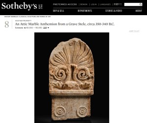 Greek funerary stele on sale at Sotheby’s, London auction 12/6/2017. Screenshot from the Sotheby’s homepage from 9/6/2017.
